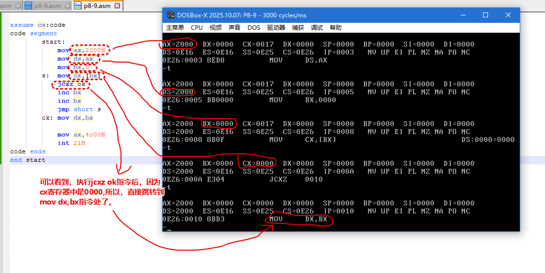 mov bx,0 ; bx清零(无实际作用,可忽略)