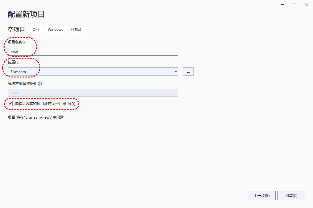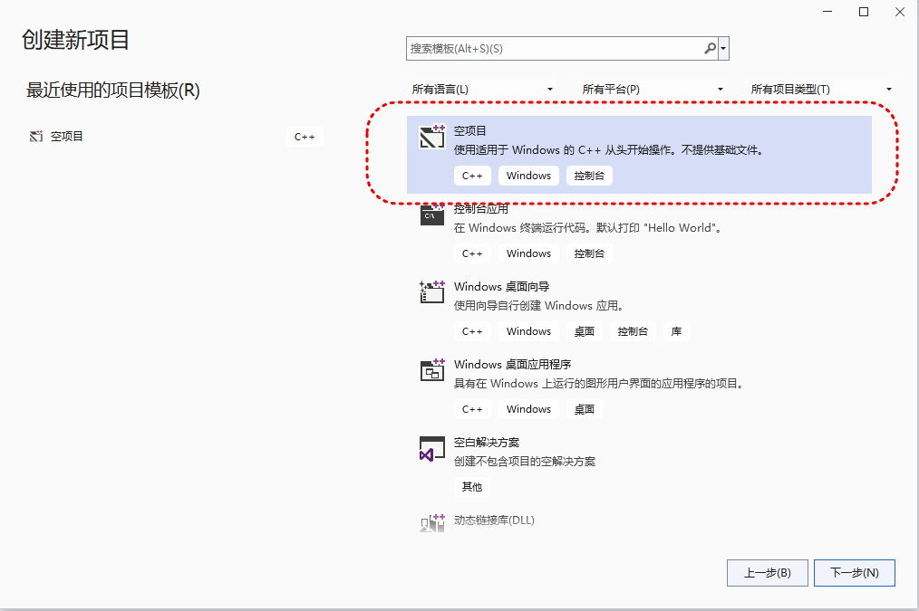 等待全部安装完成后,启动Visual Studio 2022,选择C++空项目,如下: