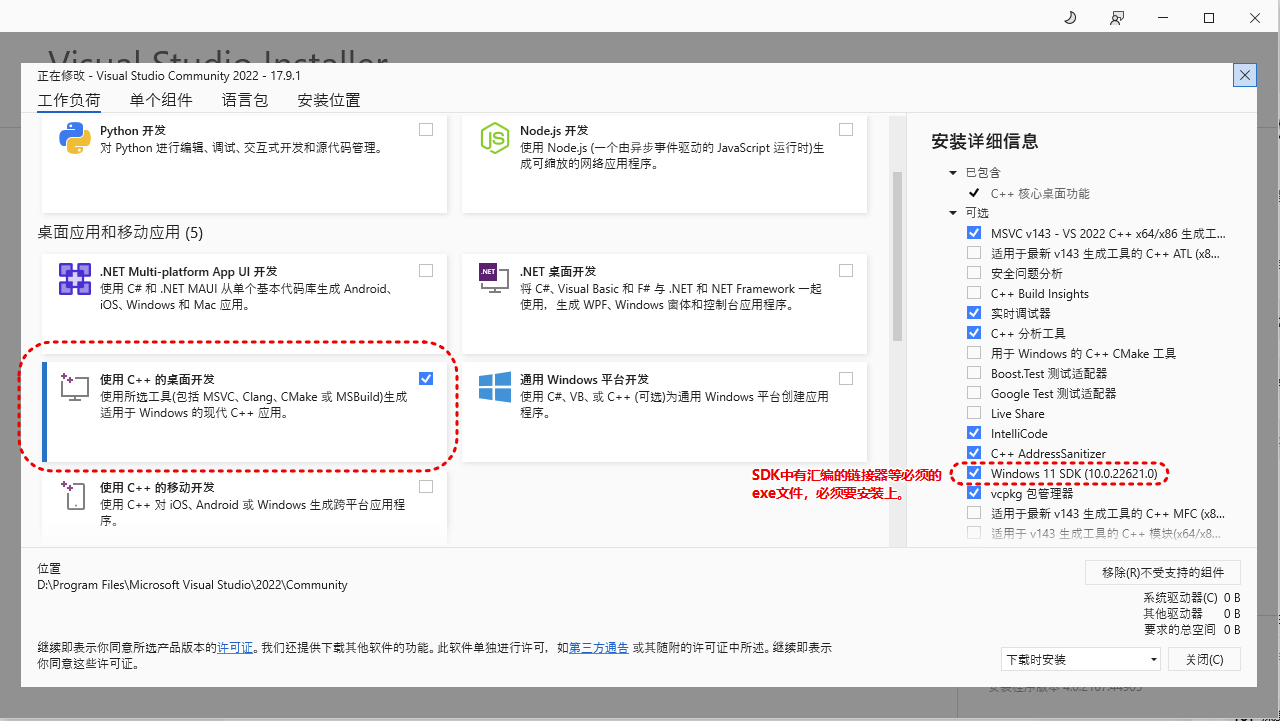 下载Visual Studio 2022 ,安装Visual C++桌面开发这个模块,一步一步安装下来就可以了。如下所示: