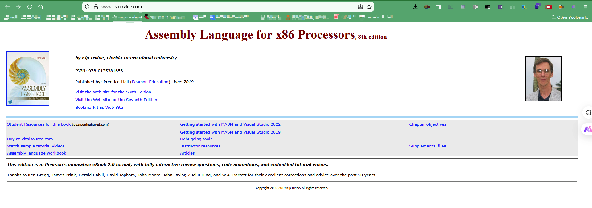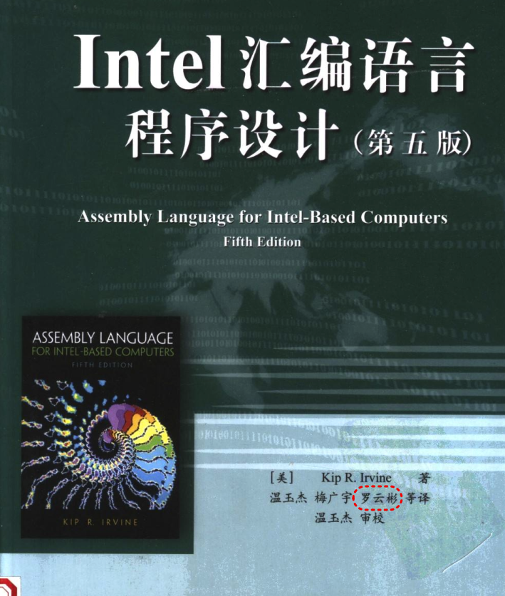 目前这本书已经出版到第8版了,我学习使用的是第5版,翻译的作者中有一位是“罗云彬”,就是《Windows 环境下 32 位汇编语言程序设计》的作者,如下: