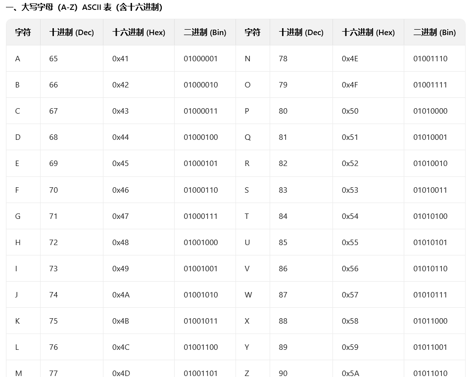 大小写十六进制差值:对应大小写字母的十六进制差值为 0x20(十进制 32),例如: