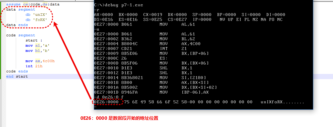 data segment ; 数据段开始