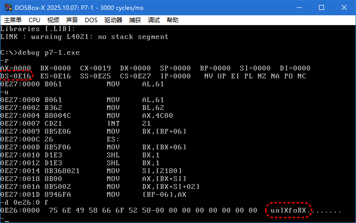 DS=0E16 即DS:0 ,0E160H是程序开始的地址