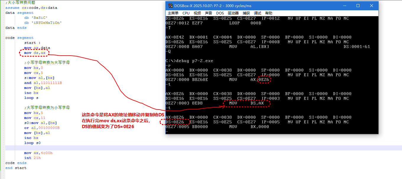 mov ds,ax ; DS指向数据段,后续[bx]默认访问数据段