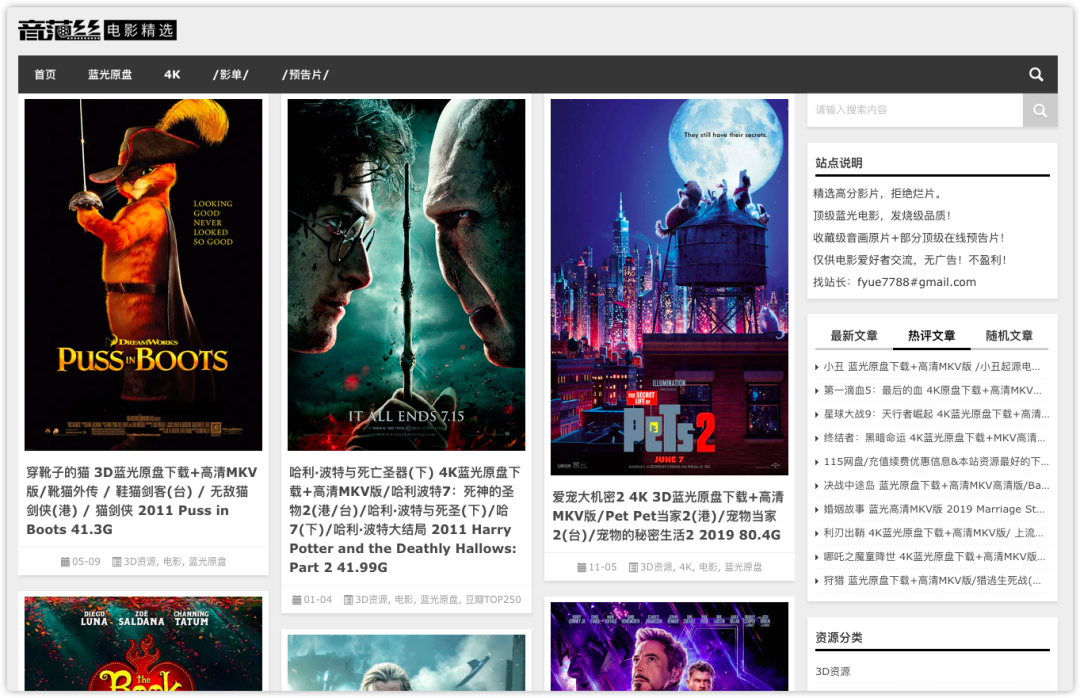 最新的电影收录后的画质不敢恭维,对于那些真正的影视爱好者来说这不是最好的选择,今天博谈天下给你们推荐一个4K、蓝光、3D高清影视下载站。