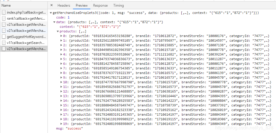 分析这七个文件,发现有用的只有四个,其中第二个rank文件包含了当前页面的所有商品的编号