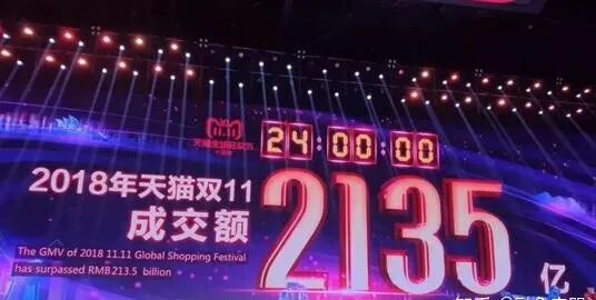 2018年天猫双11滚动了24小时的2018天猫“双11”实时交易规模数据暂时定格在2135亿元人民币。这也是自“双11”设立以来,阿里巴巴旗下平台交易总额首度打破2000亿元。
