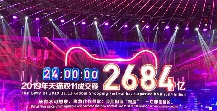 2019年天猫双十一交易额最终定格在2684亿,再次刷新双十一交易额记录。