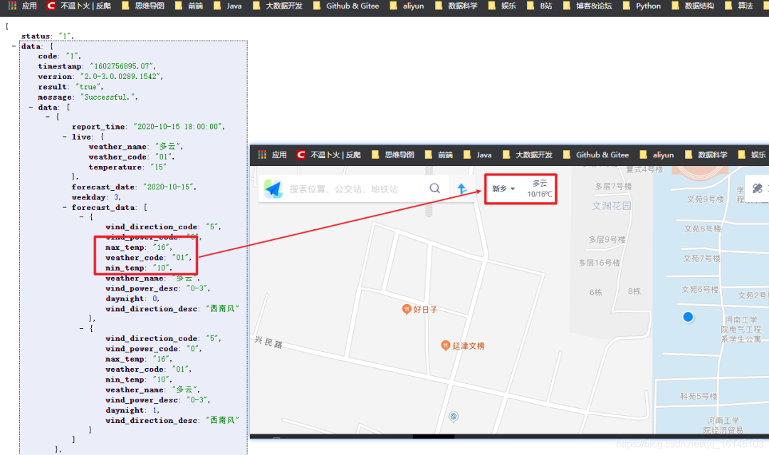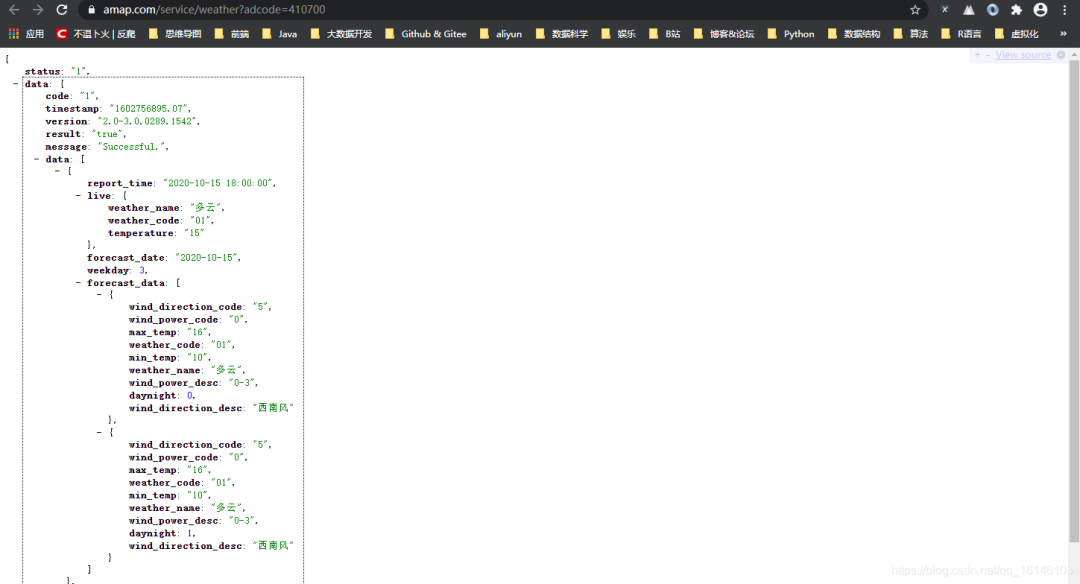 各城市对应code的url:https://www.amap.com/service/weather?adcode=410700