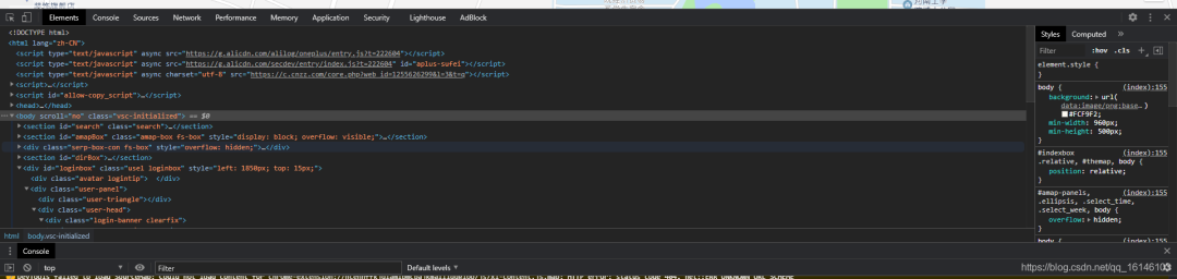 在打开后,我们发现有一堆div标签,但是并没有我们需要的数据,这个时候就可以判定其为动态网页,这个时候,我们就需要找接口