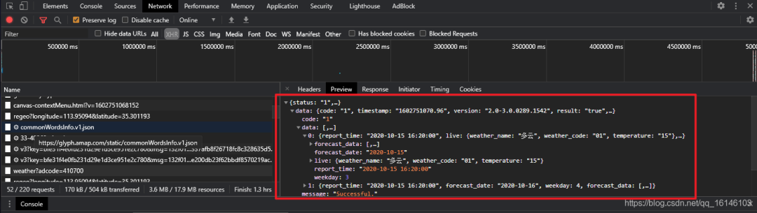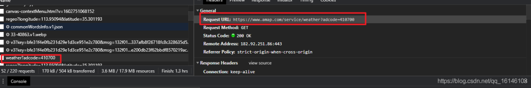 查询当前地点天气的url:https://www.amap.com/service/cityList?version=2020101417