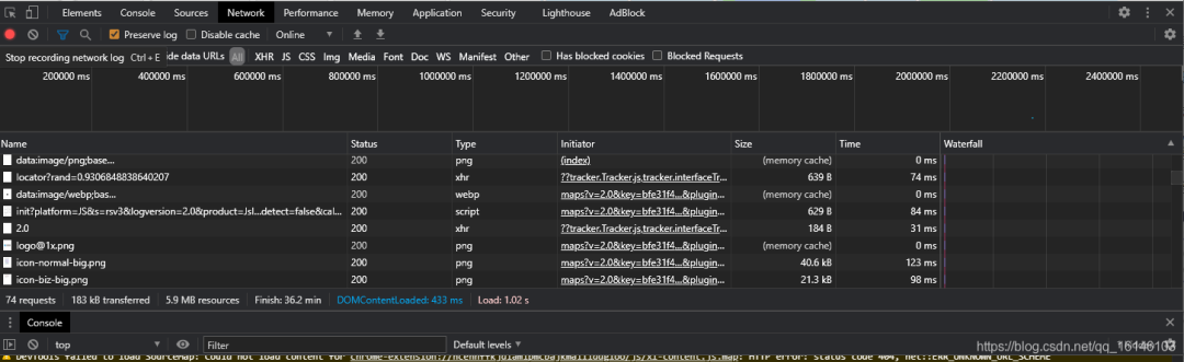 点击网络标签,我们可以看到网页向服务器发送了很多请求,数据很多,找起来太费时间