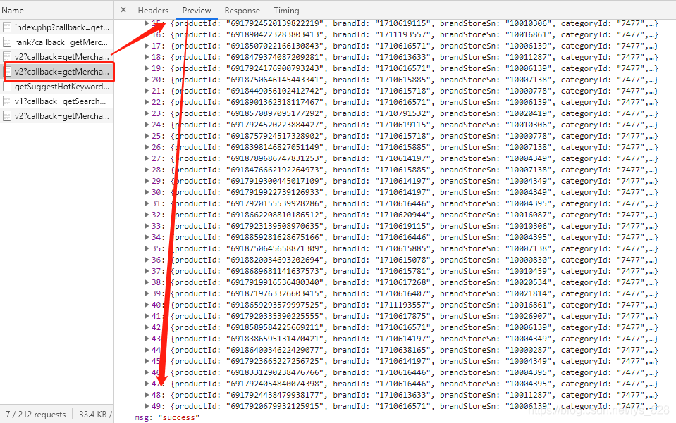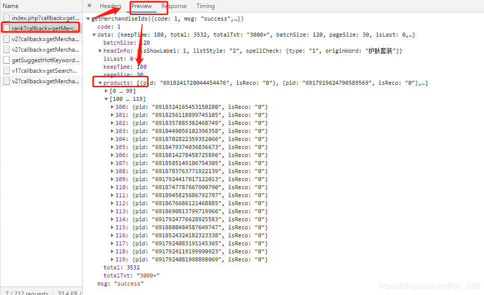 分析这七个文件,发现有用的只有四个,其中第二个rank文件包含了当前页面的所有商品的编号