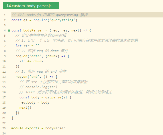 自己手动模拟一个类似于 express.urlencoded 这样的中间件,来解析 POST 提交到服务器的表单数据。
