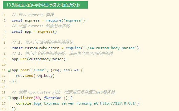 为了优化代码的结构,我们可以把自定义的中间件函数,封装为独立的模块