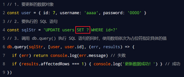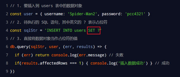 调用 db.query() 函数,指定要执行的 SQL 语句,通过回调函数拿到执行的结果: