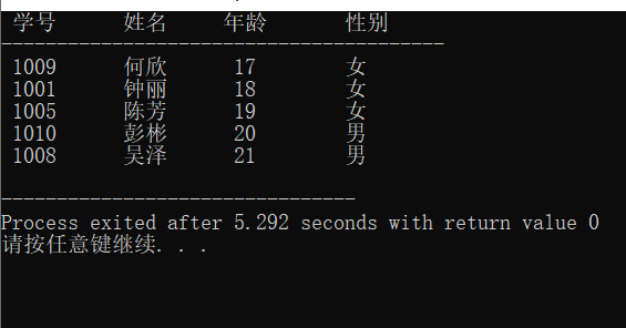 (结构体)有结构体:学号、姓名、性别、年龄,要求键盘输入5个学生的信息,以年龄对5个学生排序。