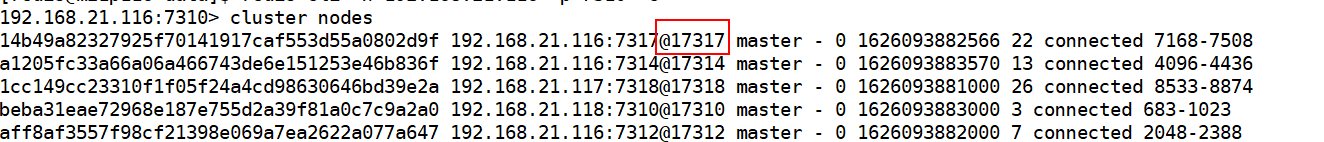 本部分主要细节是7.x版本cluster node命令执行结果和3.2版本相比,多出下面标红部分,这也是AOF重写调度任务执行失败的原因: