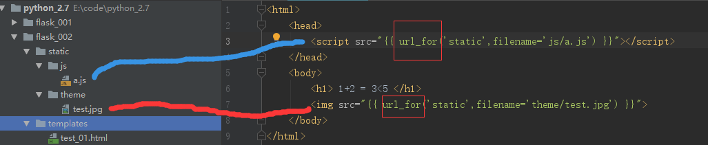 render_template( "/test_01.html" ) # 程序自动在templetes文件夹下寻找 ![]()