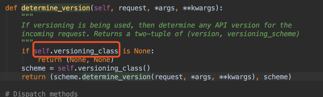 此时的配置信息中DEFAULT_VERSIONING_CLASS不再是None了, 也就是说versioning_class拿到的值也不再是None