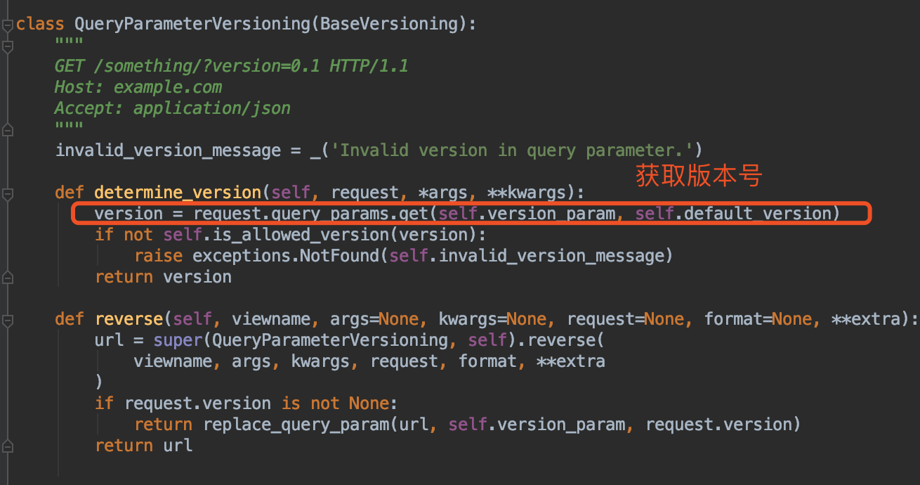 二是将获取到的versioning_class() 的实例化对象, 并且赋值给了scheme, 进而将scheme.determine_version(), 和scheme返回.