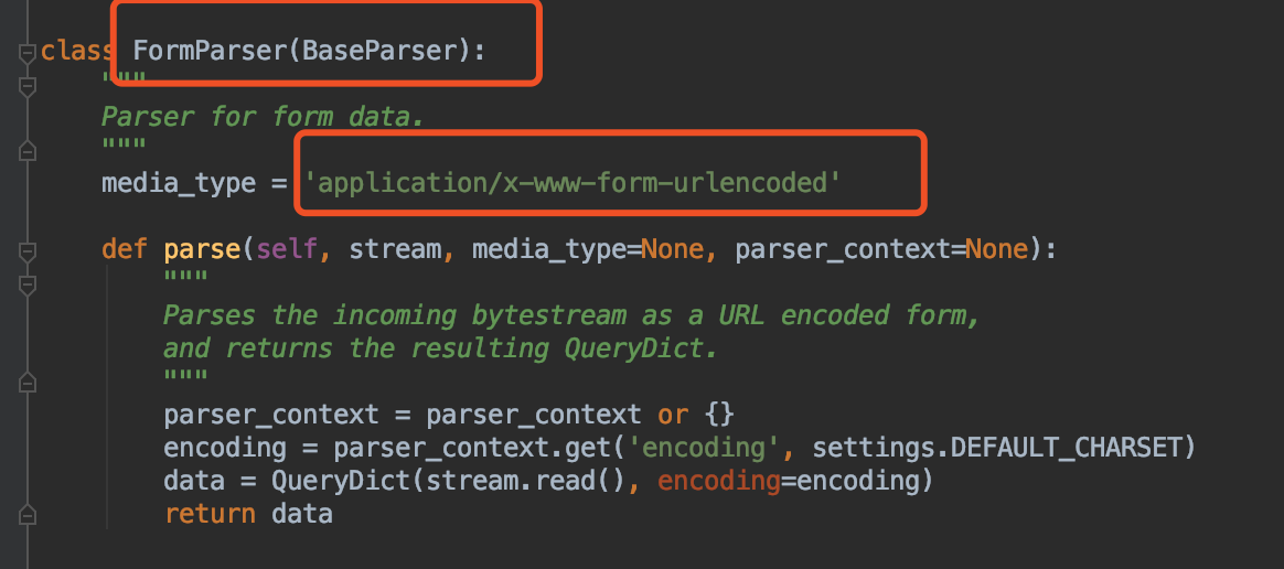 FormParser: 表示只能解析application/x-www-form-urlencoded