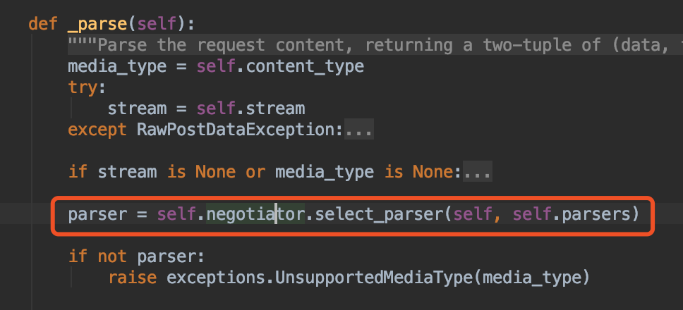 7, 循环解析器列表, 取每个解析器支持的请求头 , 根据解析器支持的请求头, 返回到底应该用哪个解析器!!!