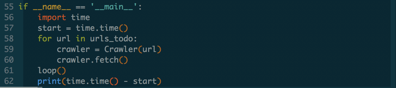 此处和前面稍有不同的是,我们将下载不同的10个页面,相对URL路径存放于urls_todo集合中。现在看看改进在哪。