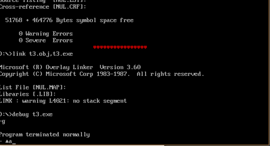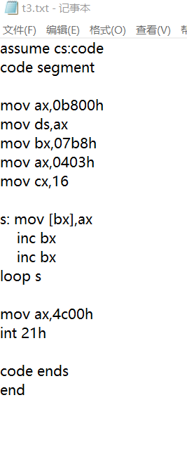 这里有两点要注意,首先是b800h前面的0,当时上课时老师看我的代码时,就有这个错误,因为要让编译器识别他为数字,就得加上0;