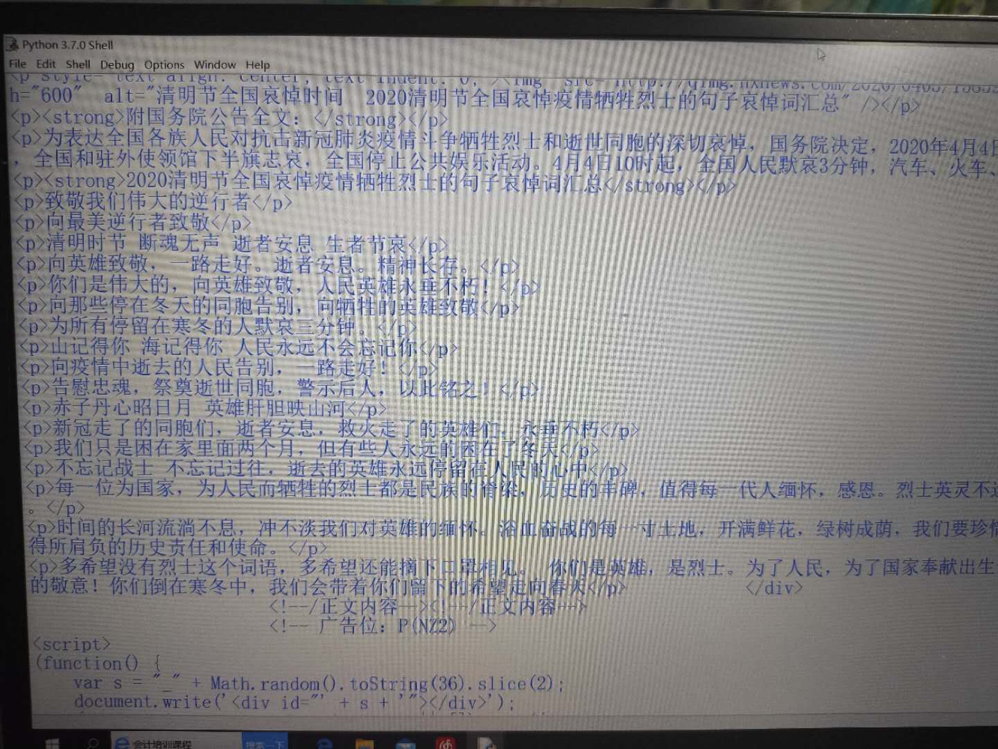 最后一个技术问题是不太熟练bs4,想要把正文提取出来但是未能完成。