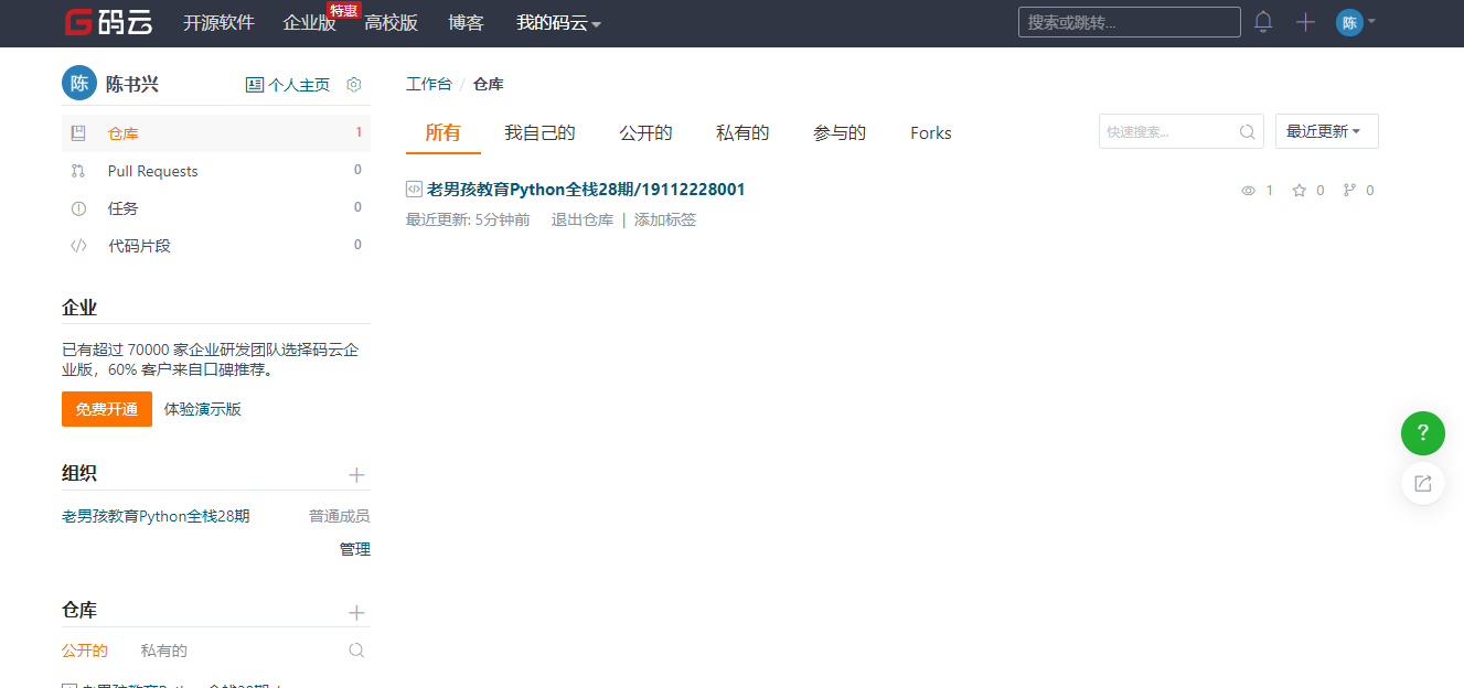 现在创建了远程的仓库,然后将本地的内容通过上传的工具提交的到创建的远程仓库中