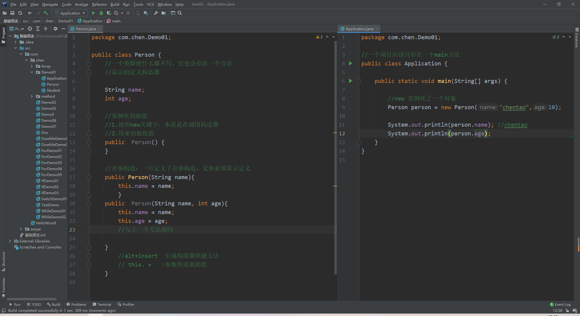 构造器:1.和类名相同2.没有返回值作用:1. new本质在调用构造方法2.初始化对象的值注意点:1.定又有参构造之后,如果想使用无参构造,显示的定义一个无参的构造