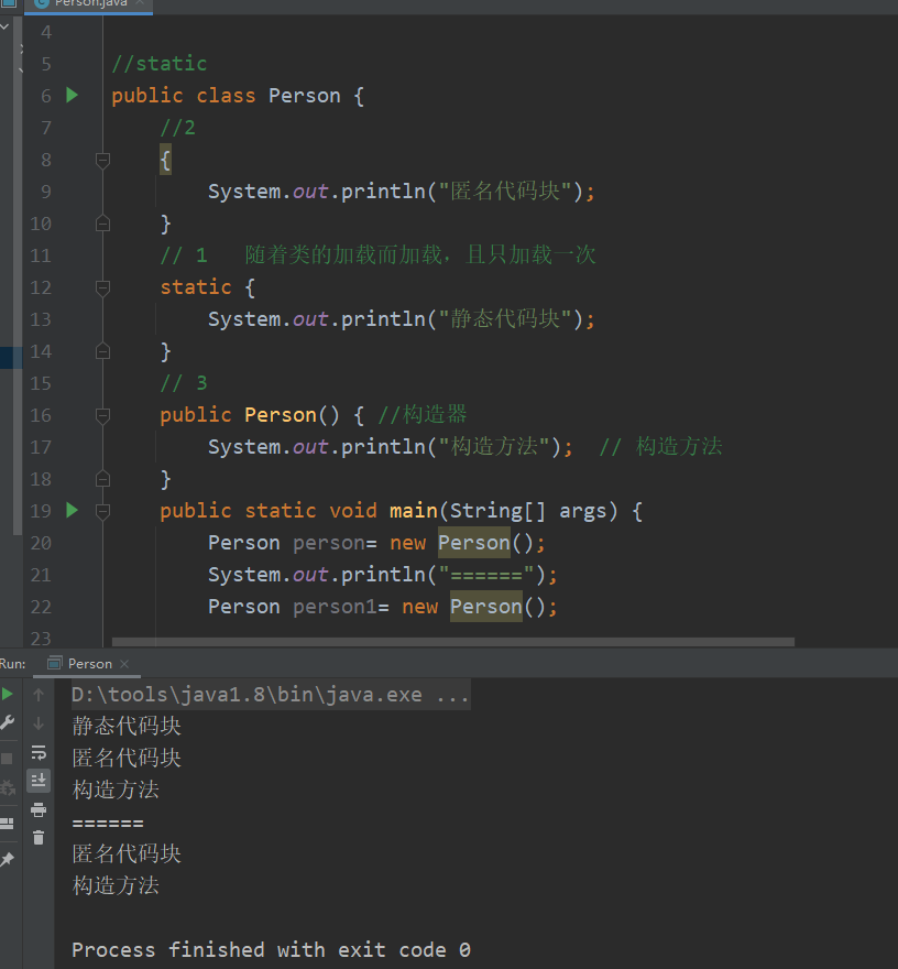 1 //static 2 public class staticDemo { 3 private static int age; //静态的变量 4 private double score; //非静态的变量 5 6 7 public static void main(String[] args) { 8 staticDemo a = new staticDemo(); 9 System.out.println(a.score); 10 System.out.println(a.age);//要先利用new关键字创建对象,然后再分别进行调用 age与score 11 System.out.println(staticDemo.age); //能够调用的原因是因为:字段里面含有static关键字,静态变量调用静态变量 12 System.out.println(staticDemo.score); //报错原因是因为:静态变量不能调用字段里面的非静态变量 13 // 1.有静态变量的推荐使用类名.方法———> eg:staticDemo.age 14 // 2.静态变量对于类,所有对象(实例)所共享,当直接使用类去调用得到说明这个变量是静态的 15 // 3.注意被final(final为常量修饰符)定义了,就不能被复制了继承,相当于没有后代了 16 }