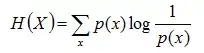 熵:如果一个随机变量X的可能取值为X = {x1, x2,…, xk},其概率分布为P(X = xi) = pi(i = 1,2, ..., n),则随机变量X的熵定义为: