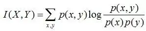 互信息:两个随机变量X,Y的互信息定义为X,Y的联合分布和各自独立分布乘积的相对熵,用I(X,Y)表示: