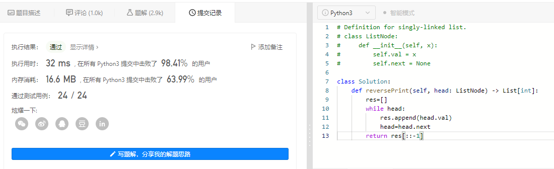 剑指 Offer 06. 从尾到头打印链表——链表