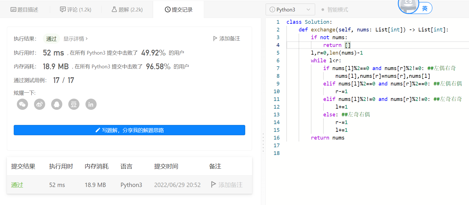 剑指 Offer 21. 调整数组顺序使奇数位于偶数前面——双指针