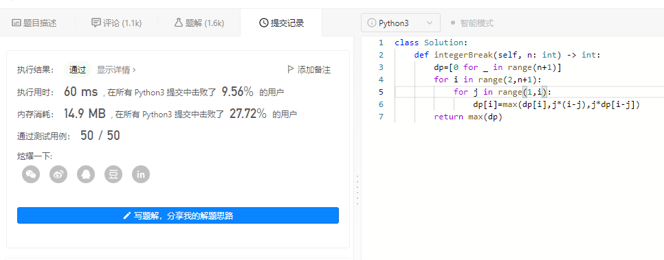 343. 整数拆分(剑指 Offer 14- I. 剪绳子)——动态规划