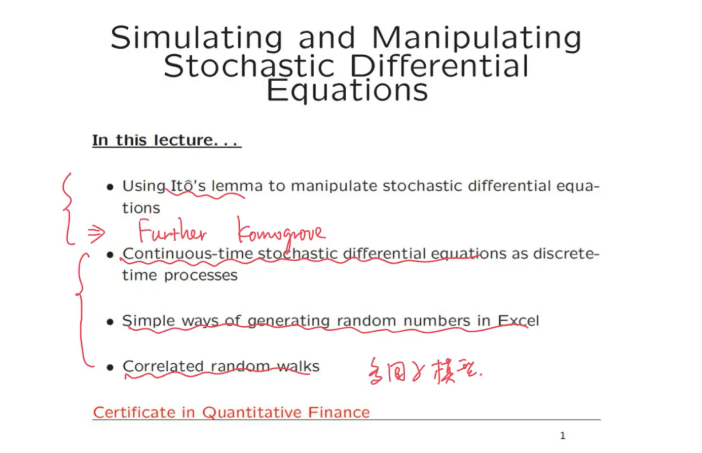 CQF M1L5 伊藤3/4/5 连续FKE BM的仿真 多因子模型