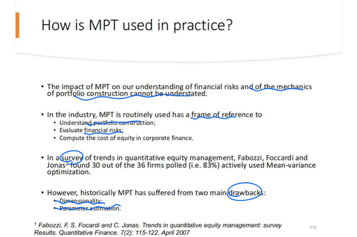 CQF M2L1 资产组合理论