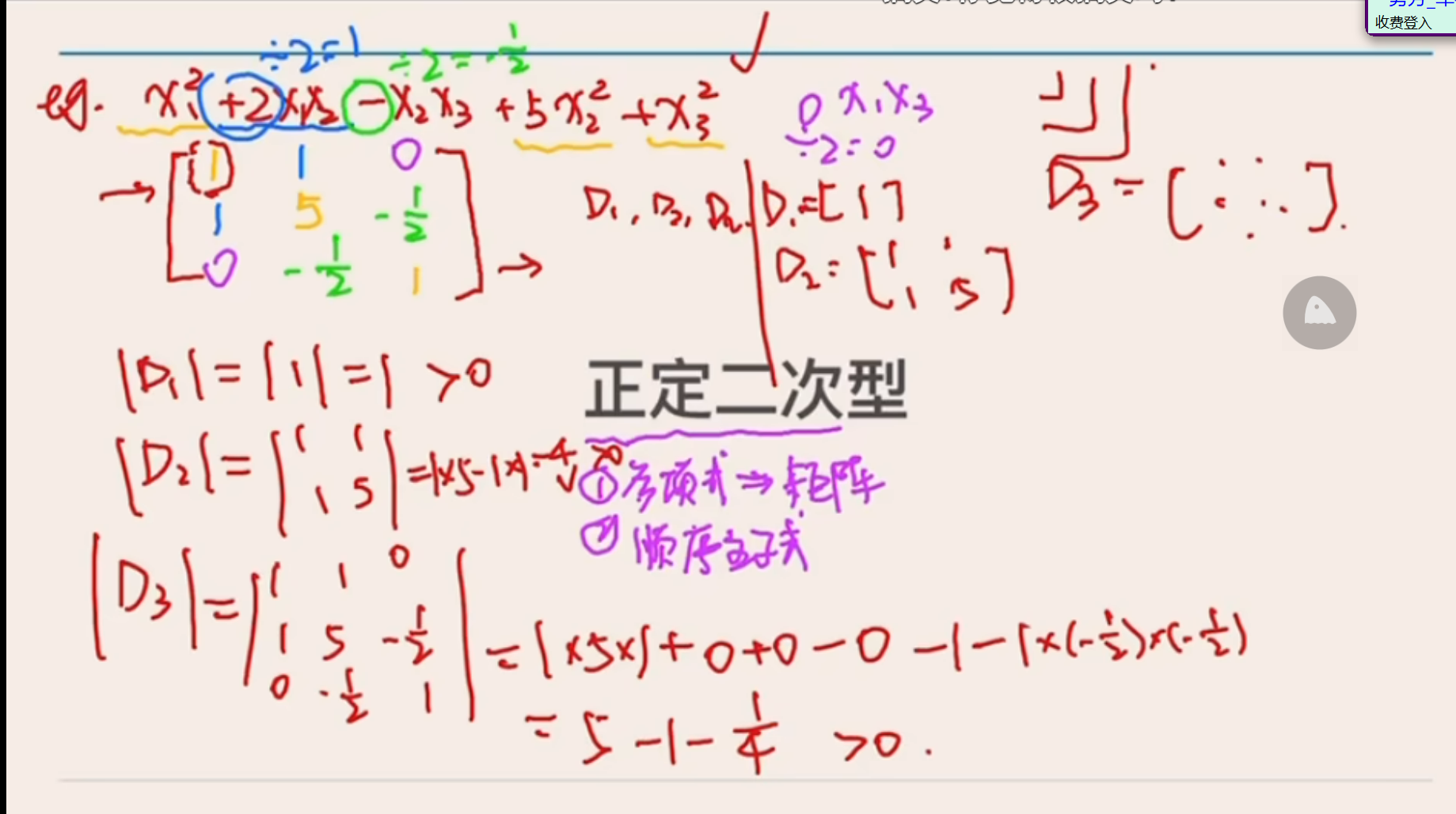 【一分钟搞定大学数学】矩阵8-判断正定二次型-顺序主子式-超详细解答