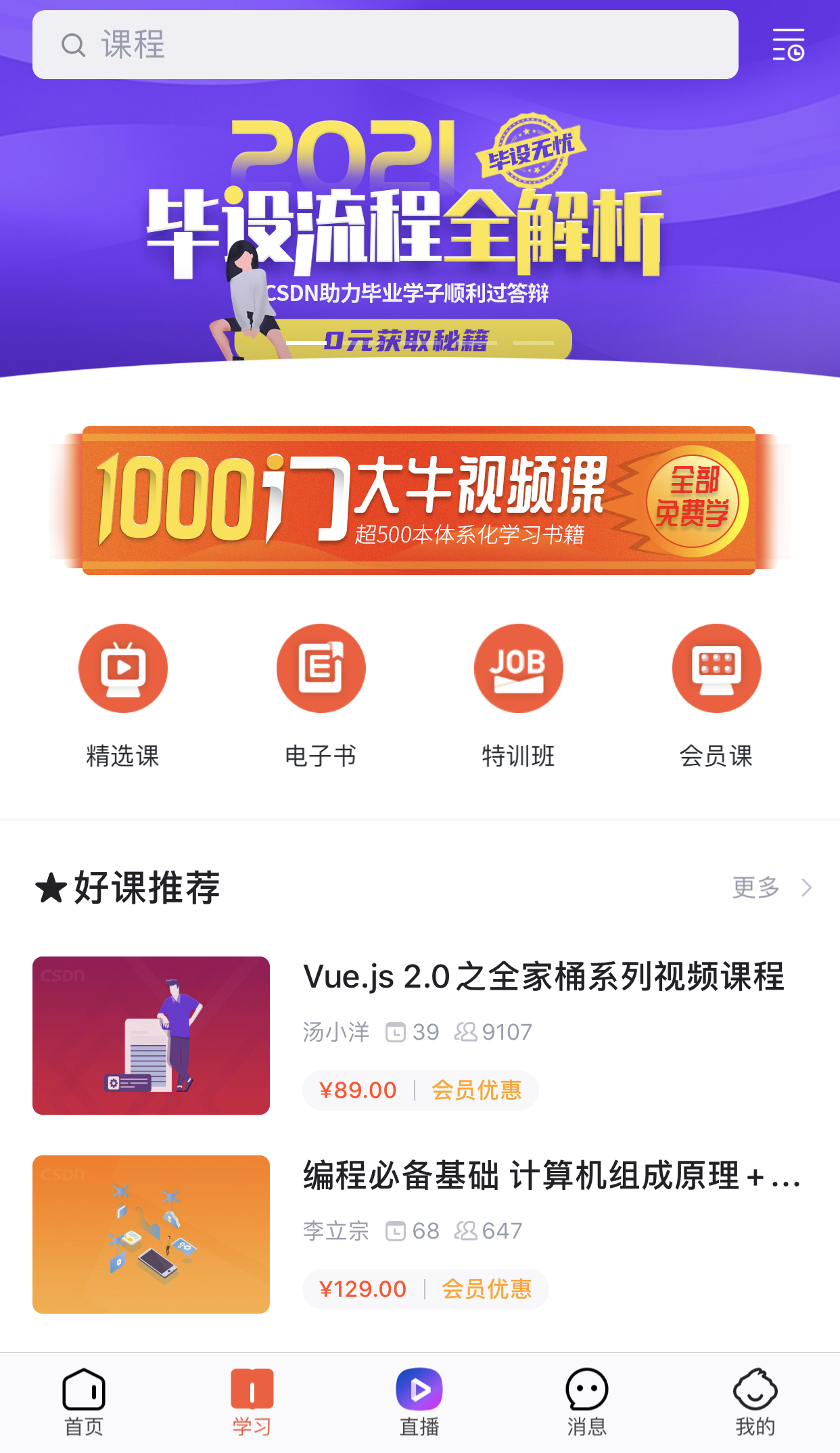 (1)整个软件里面颜色最鲜明的是学习界面,很像是推销课程的广告
