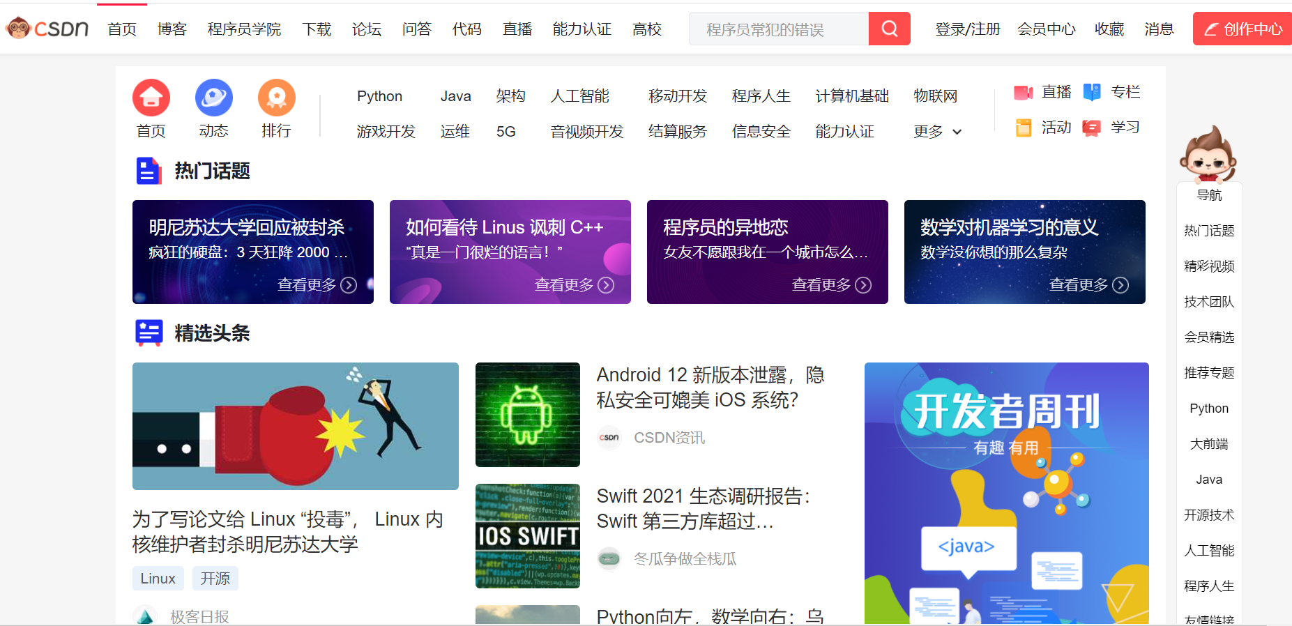 有关IT的产品有IT之家,开源中国,简书,CSDN等,但是CSDN的综合性很强,虽然有一些鼓励消费的专业课程和会员机制,但是免费用户也可以找到相关的消息,开源中国有很多最新的关于编程的资讯,简书关于IT的东西也很多,但是不仅仅是IT,还有一些其他的东西,很杂,在想随便刷编程和代码有关的东西的时候不推荐,就是没有CSDN专业