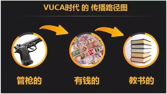 3、这个词的前世今生,即来源是? 最早来源于美军,用来描述冷战结束后越来不稳定、不确定的世界。次之,商界精英们发现商场如战场,也存在瞬息万变的不确定性。最后,VUCA蕴含的时代理念震荡了培训咨询界,培训咨询界开始日益重视VUCA带来的需求变化。