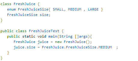 例如,我们为果汁店设计一个程序,它将限制果汁为小杯、中杯、大杯。这就意味着它不允许顾客点除了这三种尺寸外的果汁。