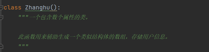 同时我们可以看到队友在所定义的zhanghu这个类中,对于这个类的作用以及各个属性所代表的含义,进行了注释说明。