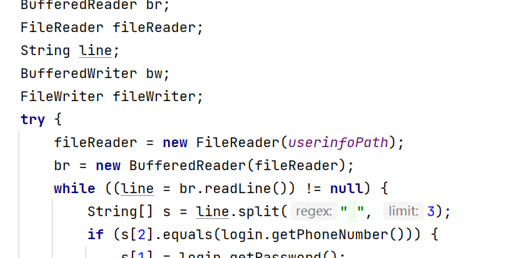 其次代码的复用,由于在登录验证和修改密码的同时,我们需要对于我们存储用户信息的txt文件userinfo.txt进行读写操作,这一部分代码复用了上一次的将题目写入文件的操作。