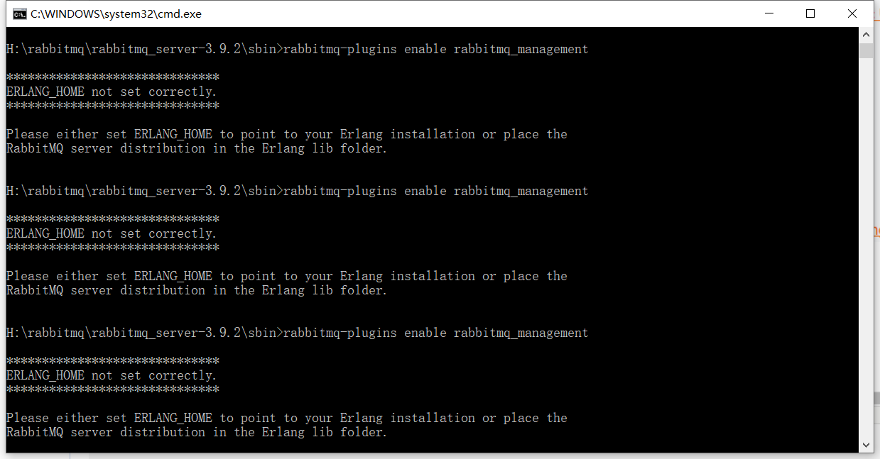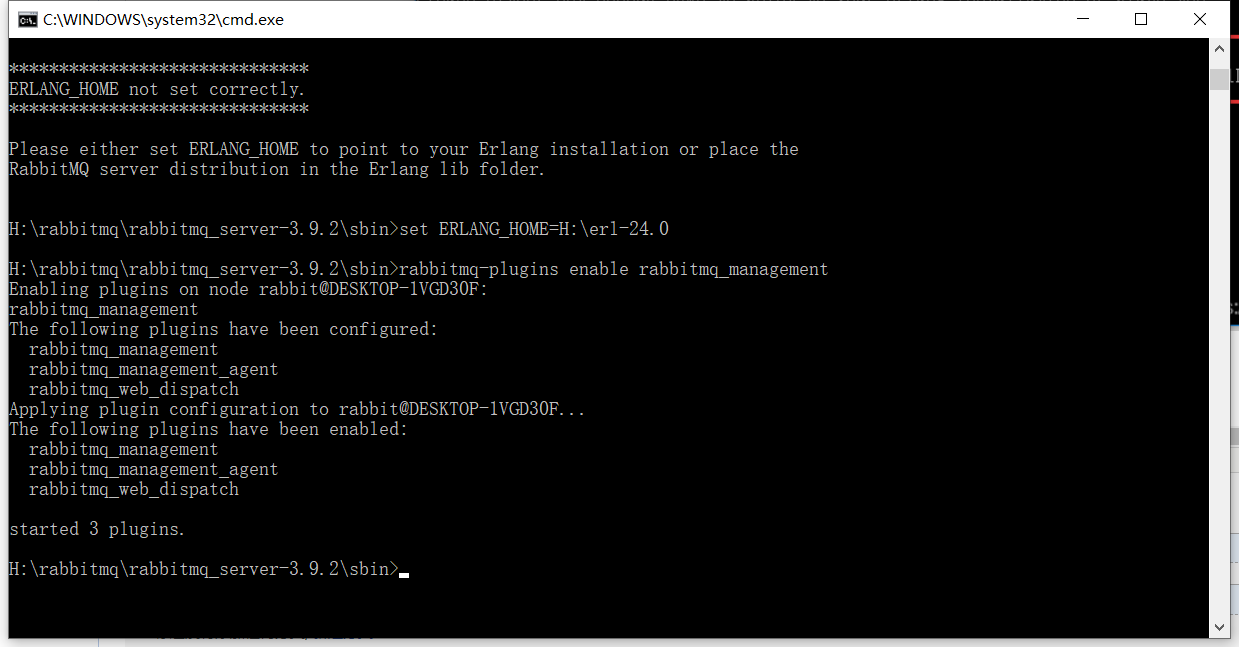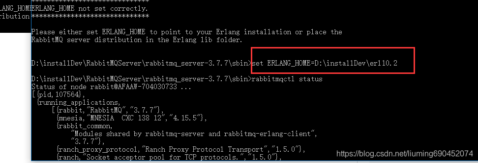 - 在rabbitmq的server, sbin下: set ERLANG_HOME=D:\installDev\erl10.2