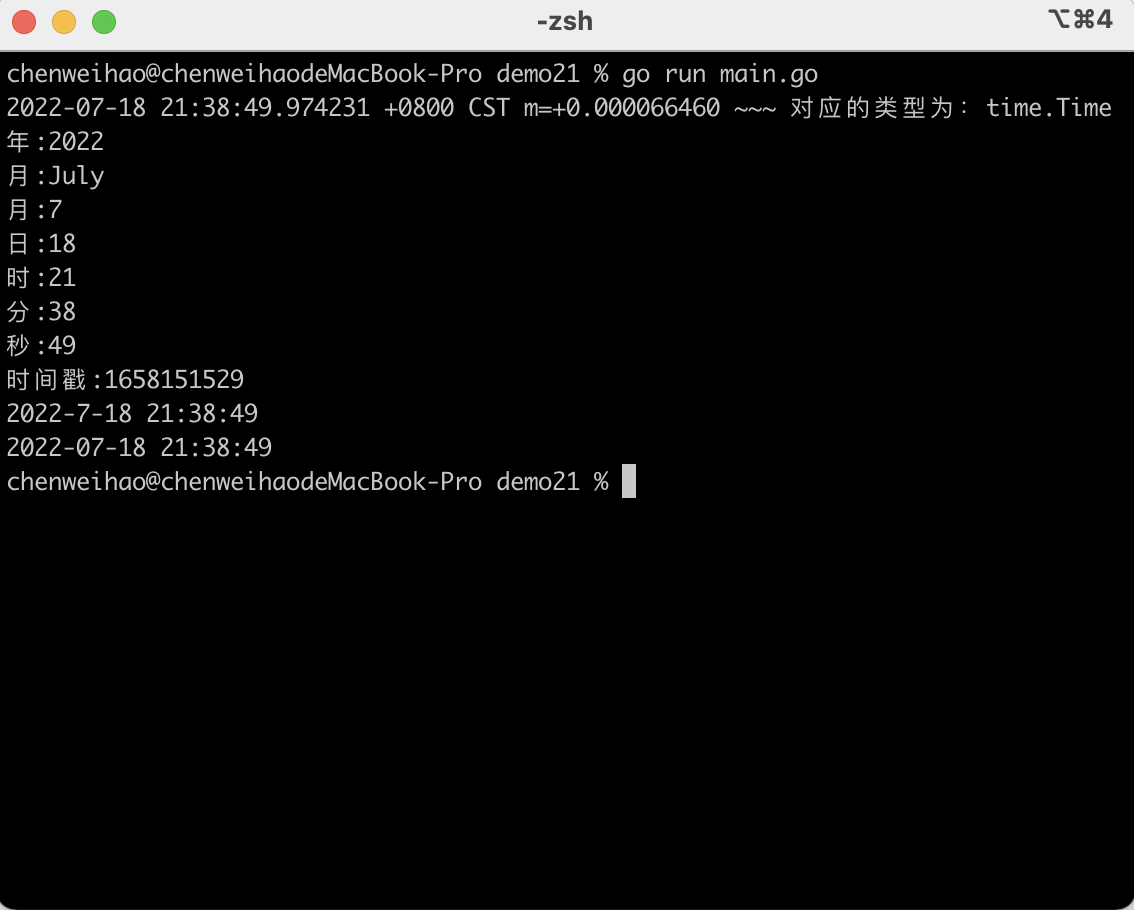 fmt.Printf("秒:%v \n", now.Second()) //秒