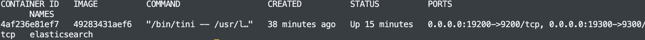 docker run -e ES_JAVA_OPTS="-Xms256m -Xmx256m" -e "discovery.type=single-node" -d -p 9200:9200 -p 9300:9300 --name elasticsearch 49283431aef6